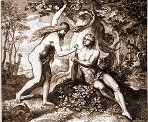 И заповедал Господь Бог человеку, говоря: от всякого дерева в саду ты будешь есть, а от дерева познания добра и зла не ешь от него, ибо в день, в который ты вкусишь от него, смертью умрёшь. Змей был хитрее всех зверей полевых, которых создал Господь Бог. И сказал змей жене: подлинно ли сказал Бог: не ешьте ни от какого дерева в раю? И сказала жена змею: плоды с дерев мы можем есть, только плодов дерева, которое среди рая, сказал Бог, не ешьте их и не прикасайтесь к ним, чтобы вам не умереть. И сказал змей жене: нет, не умрёте, но знает Бог, что в день, в который вы вкусите их, откроются глаза ваши, и вы будете, как боги, знающие добро и зло. И увидела жена, что дерево хорошо для пищи и что оно приятно для глаз и вожделенно, потому что даёт знание; и взяла плодов его и ела; и дала также мужу своему, и он ел.
