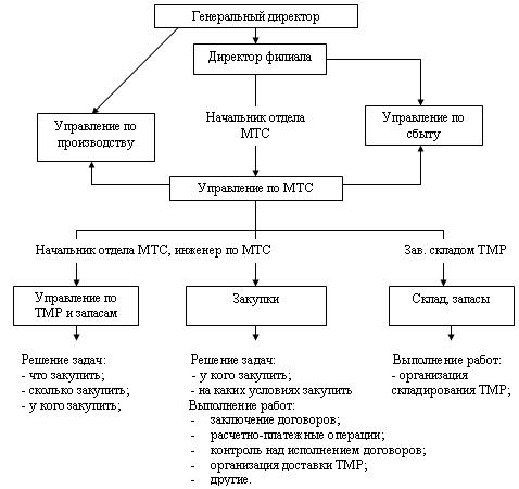 Для функциональной схемы организации службы МТО характерно выделение отделов в зависимости от выполняемых функций: планирования потребностей в материально-технических ресурсах, оперативно-заготовительной работы, складирование и др.