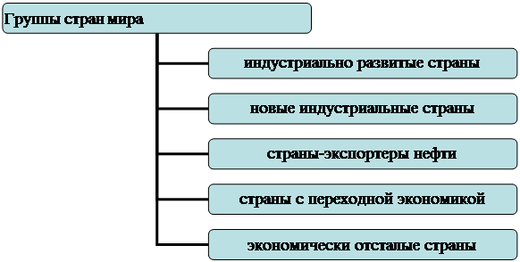 Весь этот огромный мир чрезвычайно многообразен, сложен, противоречив, поэтому составляющие его страны классифицировать весьма затруднительно. И все же, отталкиваясь от общих социально-экономических признаков, страны мира можно условно распределить на следующие пять основных групп.