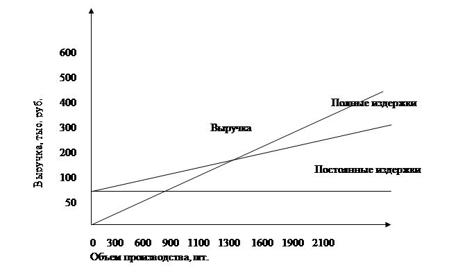 Одним из основных практических результатов использования классификации расходов предприятия по принципу зависимости от объема производства является возможность прогнозирования прибыли, исходя из предполагаемого состояния расходов, а также определение для каждой конкретной ситуации объема реализации, обеспечивающего безубыточную деятельность. Величину выручки от реализации, при которой предприятие будет в состоянии покрыть свои расходы без получения прибыли, принято называть критическим объемом производства ("мертвой точкой").