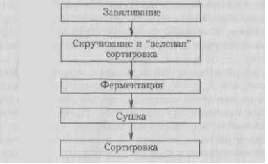 Производство чая ведется непосредственно на чайных фабриках первичной переработки и включает в себя следующие основные технологические процессы (см. приложение А): завяливание, скручивание, ферментация и сушка. Завяливание является первым технологическим процессом производства черного чая, при котором происходит физико–механическая и биохимическая подготовка сырья. Цель завяливания заключается в удалении влаги из чайных листьев, вследствие чего, в условиях водного дефицита, повышается концентрация клеточного сока и сухого вещества, и биохимические изменения протекают более интенсивно. В сортовом чайном листе содержание влаги составляет 75–78%, а после завяливания лист должен содержать 62–64%. Соблюдение норм остаточной влажности после завяливания имеет большое значение для успешного проведения последующих процессов скручивания и ферментации, для получения высококачественного продукта. Различают два способа завяливания: естественный и искусственный. Естественное завяливание часто применяется в Индии, Шри–Ланке и других странах с жарким климатом. В северных странах, в частности таких, как Россия (Краснодарский край) и Грузия, применяется искусственное завяливание в специальных завялочных машинах. В результате завяливания лист теряет влагу, все части флеша делаются мягкими и эластичными, при перегибе не ломаются и легко поддаются следующему технологическому процессу — скручиванию.