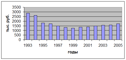 Рис.1. Годовые объемы производства мороженого в России в 1993 - 2005 годах.