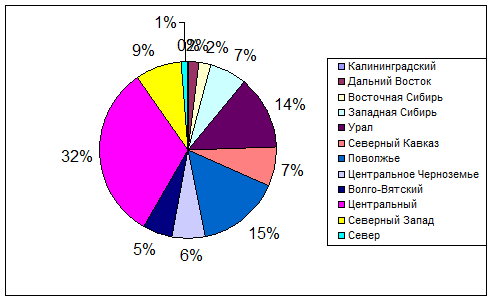 Следует отметить еще одну особенность внешней среды рассматриваемого сегмента рынка. Это крайне неравномерное размещение его по территории Российской Федерации, что отражено на рисунке 2.