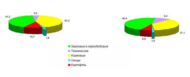 Анализ структуры посевных площадей в сельскохозяйственных предприятиях республики показывает, что в основном (примерно 75% хозяйств) она соответствует почвенно-климатическим условиям. Важнейшим показателем при оценке структуры посевов является удельный вес зерновых культур. В настоящее время в общественном секторе зерновые и зернобобовые культуры занимают 50-53% в структуре посевных площадей. В перспективе удельный вес зерновых и зернобобовых целесообразно увеличить до 54-56 % (площадь 2,7-2,9 млн. га) за счет сокращения группы кормовых культур при одновременном повышении продуктивности травяных угодий. В перспективе структура зернового клина будет в значительной степени формироваться под влиянием спроса на различные виды зерна.