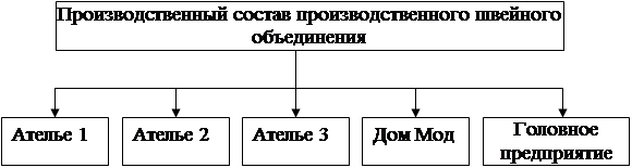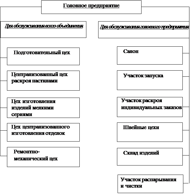 Производственная структура производственного швейного объединения и головного предприятия представлены на рисунках 1 и 2.