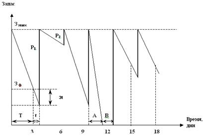 Рис. 3. Система контроля состояния запасов с фиксированным размером заказа