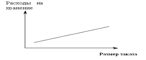 Расходы по хранению растут прямо пропорционально размеру заказа. Эта зависимость графически представлена на рис. 5.