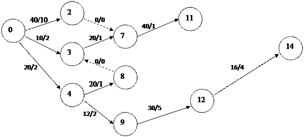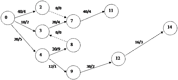 Работа – это либо любой активный трудовой процесс, требующий затрат времени и ресурсов и приводящий к достижению определенных результатов (событий), либо пассивный процесс не требующий затрат труда, но занимающий время, либо, наконец, связь между какими-то результатами работ (событиями), называемая фиктивной работой. Обычно действительные работы в сетевом графике обозначаются сплошными стрелками ( ), а фиктивные работы – пунктирными ( ).