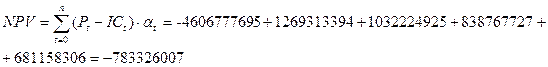 3. Индекс доходности инвестиций , проект не эффективен.