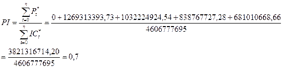 Индекс доходности инвестиций ( ) – отношение суммы дисконтированных доходов к осуществленным инвестициям ( ):