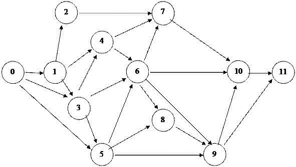 Из этого следует, что для того, чтобы определить длину и топологию критического пути, вовсе не обязательно перебирать все полные пути сетевого графика и определять их длины. Определив ранний срок наступления завершающего события сети, мы тем самым определяем длину критического пути, а, выявив события с нулевыми резервами времени, определяем его топологию.