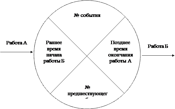 : для всех непосредственно предшествующих ему работ оно является конечным, а для всех непосредственно следующих за ним — начальным. При этом предполагается, что событие не имеет продолжительности и свершается как бы мгновенно. Поэтому каждое событие, включаемое в сетевую модель, должно быть полно, точно и всесторонне определено, его формулировка должна включать в себя результат всех непосредственно предшествующих ему работ.