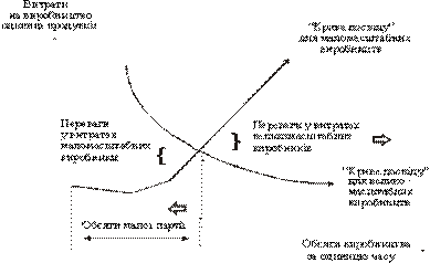 - економія на масштабі — збільшує частку ринку, необхідну для досягнення конкурентоспроможності товару;