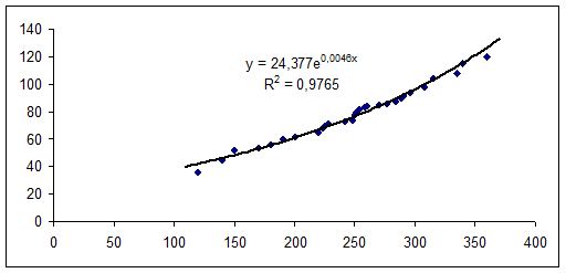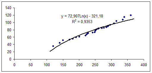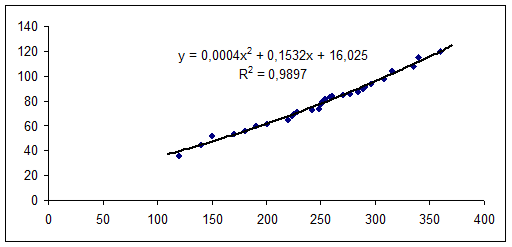 Если происходит неравномерное изменение явления в связи с изменением величины влияющего фактора, то такая связь называется криволинейной. Математически криволинейная зависимость может быть выражена уравнением криволинейной связи (уравнение параболы, показательная, степенная, логарифмическая функции и другие)