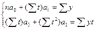 Максимальная разность отклонения имеет место м/у дисперсиями 4 и3 разностных рядов, отсюда следует что степень полинома будет равна 4-3=1 и выравнивание ряда будем проводить по прямой y=a0
