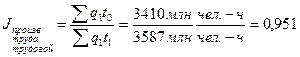 измерения производительности труда показывает соотношение фактических затрат труда на определенный объем работы с затратами труда, полагающимися по норме, т.е. он характеризует степень выполнения нормы выработки рабочим. Расчет производительности труда этим методом представляет собой объем работы с учетом нормативной трудоемкости (чел.-ч), приходящийся на единицу фактически отработанного времени. При измерении производительности труда трудовым методом используются нормативы времени на производство единицы продукции или продажу единицы товара.