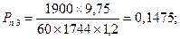 Где – электрическая мощность стойки управления (принимаем =1,7кВт). =1,06.