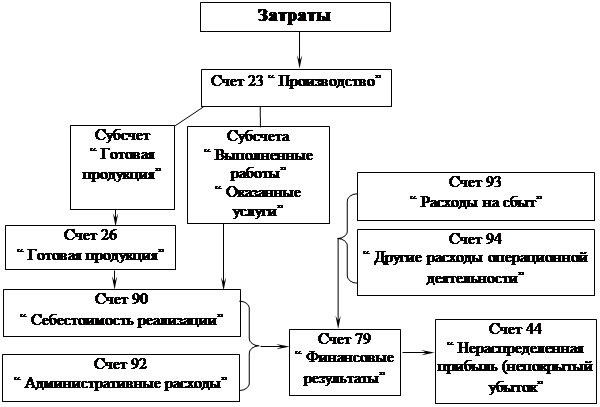 Рисунок-схема № I‑5 Определение финансового результата от реализации продукции (работ, услуг). Основные бухгалтерские проводки по учету и реализации готовой продукции приведены в следующей таблице. Таблица 3.