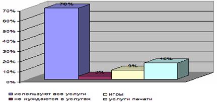 В ходе исследования было выяснено, кто является потенциальными потребителями услуг компьютерного центра, каков их материальный доход и насколько часто они готовы пользоваться услугами компьютерного центра, и какие именно услуги им необходимы больше всего.