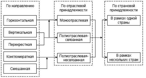 Необходимо отметить, что для экономики СССР были характерны процессы диверсификации на основе интеграции в производстве, которые имели свою специфику. В целях рационального использования ресурсов, получения народнохозяйственного эффекта, облегчения централизованного планирования и контроля внедрялись различного рода объединения, комбинаты, комплексы. Кроме того, крупные предприятия несли значительную социальную нагрузку: жилищный фонд, дома культуры, базы отдыха, детские сады и т.п. На сегодняшний день диверсификация посредством приобретения и строительства активов внутри страны дополнилась диверсификацией посредством приобретения активов за рубежом [2, с. 12].