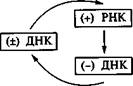 репликация осуществляется по схеме: ДНК —»РНК -> ДНК.