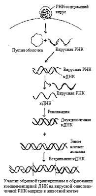 Только в 1970 г. американские ученые Г. Темин и Мицутани и независимо от них Д.Балтимор разрешили эту загадку. Они доказали возможность передачи генетической информации от РНК к ДНК. Это открытие перевернуло центральную догму молекулярной биологии о том, что генетическая информация может переноситься только в направлении ДНК–РНК–белок. Пять лет понадобилось Г. Темину для обнаружения фермента, осуществляющего перенос информации от РНК к ДНК, – РНК-зависимой ДНК-полимеразы. Этот фермент получил название обратной транскриптазы.