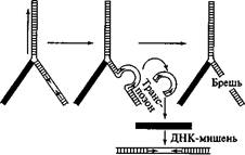 – Репликация элемента без ДКП сопряжена непосредственно с районом будущего внедрения ретротранспозона (рис. 97).