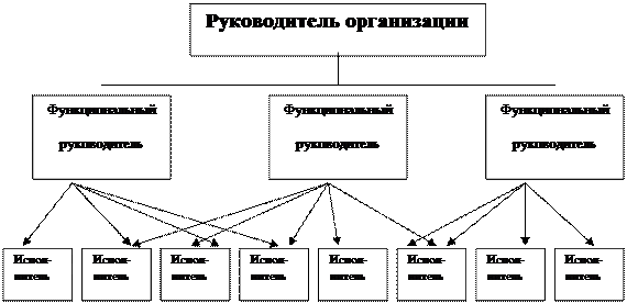 Сочетание специализаций процессов управления с концентрацией однородных управленческих работ. Специализация способствует росту функциональных отделов и функциональных исполнителей и это является большим недостатком структуры.