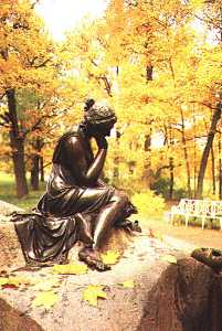 В.А. Серов. "Пушкин в парке". Исследователи иконографии поэта спорят о том, в каком месте изображен серовский Пушкин: в Царском Селе или в деревне. Но важно ли это? Очень точно на этот вопрос ответил И.Е.Репин: "Серов, как Толстой, как Чехов, более всего ненавидел общие места в искусстве - банальность и шаблонность." |