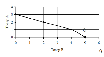 в) максимальна возможный объём производства любого количества продуктов при данных ресурсах.