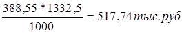 ТП = 1332,5*38,76=51647,7 тыс. руб.