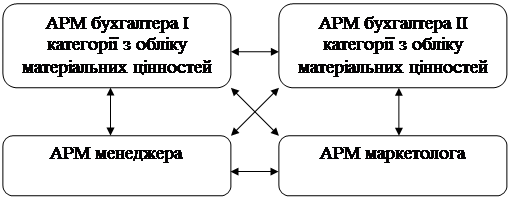 Рис.3 - Мережа АРМ із розподіленою базою даних