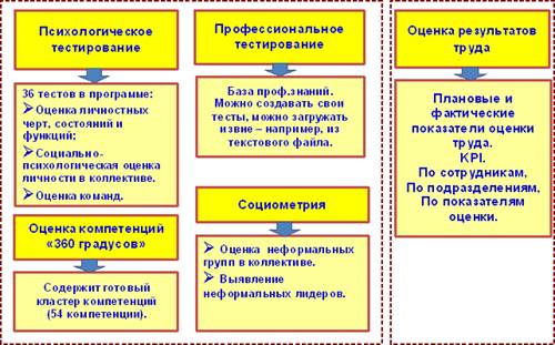 1. Специальные отчеты для каждой персонал - технологии: психодиагностики, формирования команд, оценки социально-психологического климата, оценки профессиональных и личностных компетенций, системы KPI.