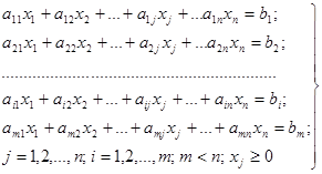 Умови завдання подаються за допомогою системи лінійних рівнянь чи нерівностей, що виражають обмеження, які накладаються на використання наявних ресурсів: