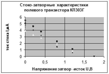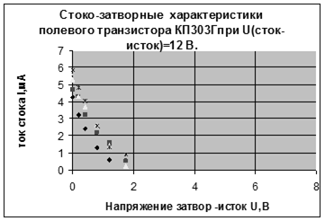 6. 1 Стоко-затворные характеристики полевого транзистора КП303Г и его температурная зависимость
