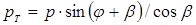sinβ, возникающая в результате поперечного наклона дороги на угол β,