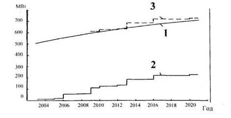 1 - прогноз; 2 - изменение общей мощности ГЭС; 3 - то же - ГЭС и ГАЭС.