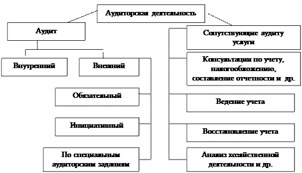 Аудиторская деятельность включает помимо проверок оказание различного рода услуг: ведение и восстановление учета, консультации по вопросам ведения учета, налогообложения, обучение и др.