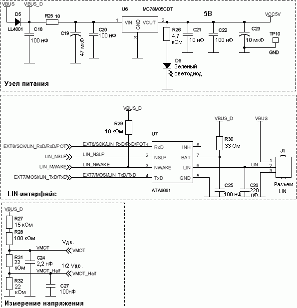 Возможности ЦПУ и памяти микроконтроллера AT90PWM3 позволят разработчику расширить функциональные данного решения.
