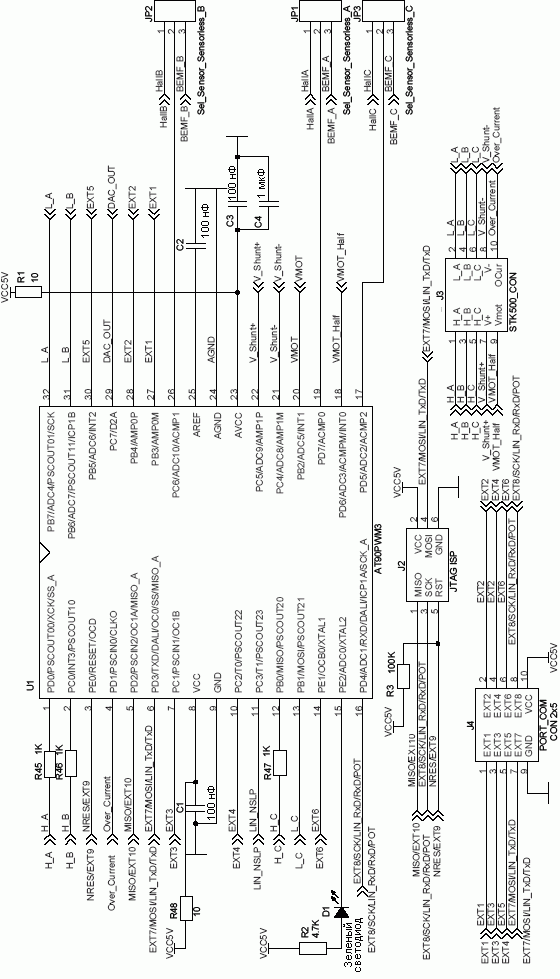 В следующей части данных рекомендаций по применению будет рассмотрена аппаратная и программная реализация на основе стартового набора ATAVRMC100 с микроконтроллером AT90PWM3.