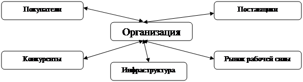 Предприятие должно ограничивать негативные воздействия внешних факторов, наиболее существенно влияющих на результаты его деятельности или, наоборот более полно использовать благоприятные возможности. Под факторами внешней среды понимается сила, с которой изменения одного фактора воздействуют на другие факторы. Отсюда следует понимать, что при организации управления необходимо максимально учитывать факторы внешнего воздействия и рассматривать конкретную организацию как целостную систему, состоящую из взаимно связанных частей.