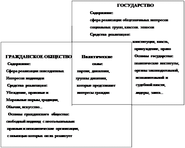 составляет сферу абсолютной свободы частных лиц в отношениях друг с другом. Оно предстает в виде социального, экономического и культурного пространства, в котором взаимодействует свободные индивиды, реализующие частные интересы и осуществляющие индивидуальный выбор. По определению Ж.-Л. Кермонна, “гражданское общество слагается из множественности межличностных отношений и социальных сил, которые объединяют составляющих данное общество мужчин и женщин без непосредственного вмешательства и помощи государства”. Государство, напротив, представляет собой пространство тотально регламентированных взаимоотношений политически организованных субъектов: государственных структур и привыкающих к ним политических партий, групп давления и т.д.