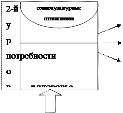 Потребности в продолжении рода, здоровье, воспитании детей, духовном совершенствовании, вере, информации, общении, сексе и т.д. реализует комплекс социокультурных отношений, включающий религиозные, семейно-брачные, этнические и иные взаимодействия. Они образуют второй уровень межличностных взаимосвязей