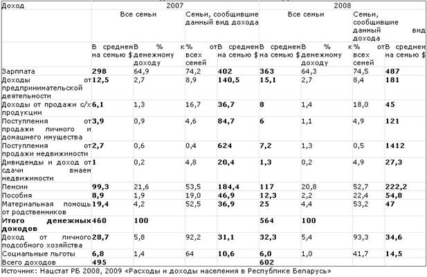 Наконец, проанализирует распределение домашних хозяйств по уровню среднедушевых располагаемых ресурсов. В 2008г. ресурсы менее $230 в месяц имели 48,3% всех семей. В сельской местности таких семей 57,9%. Поскольку на увеличение зарплат и пенсий в 2009 году денег нет, то при девальвации белорусского рубля в этом году на 60%, более половины семей по стране будут иметь менее $145 располагаемых ресурсов на человека, это очень мало, учитывая то, что одни коммунальные услуги для обычной семьи из трех человек составляют примерно $30-60 в зависимости от сезонного периода [13].