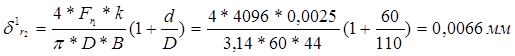 где - упругое сближение тел качения и колец подшипника, мм;