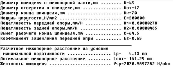 - диаметр шпинделя между опорами Dk=45мм;