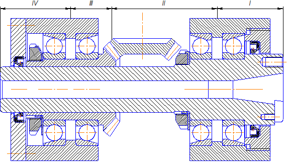 Для получения частотных характеристик шпиндельного узла разобъем его на участки и расчитаем их осевые моменты инерции и массу: