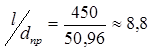 Определим жесткость детали используя отношение длины к приведенному диаметру.