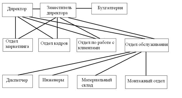 Оперативное управление всеми процессами предприятия берёт на себя директор и в его отсутствие заместитель директора. Ему подчинены все структурные подразделения, занятые в управлении производством: Отдел маркетинга; отдел кадров; отдел по работе с клиентами; отдел обслуживания;