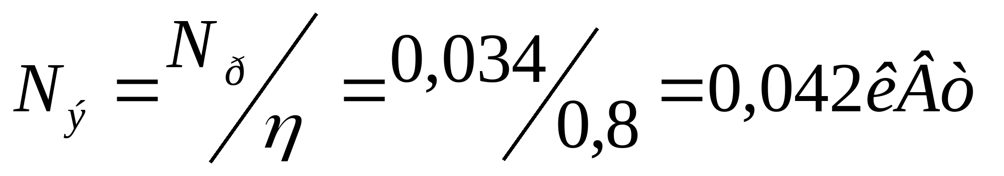 Фрезеровать сквозной паз шириной B=5 мм., глубиной h=29,5 мм. и длиной l=40 мм. В качестве инструмента: Дисковая трёхсторонняя фреза из быстрорежущей стали Р6М5 80 мм с числом зубьев z=18 (Фреза 2240-0393-Р9 ГОСТ 3755-78). Операцию производим на горизонтально-фрезерном станке 6Т82Г за один технологический переход. Глубина резания t=h=29,5 мм. Подача на зуб фрезы SZ=0,3 мм/зуб. [3, таб. 33]. Стойкость фрезы Т=120 мин. Определяем скорость резания V м/мин, допускаемую режущими свойствами инструмента: V= (CVDqv/TmtXvSYvBUvZPv)Kv, Где D-диаметр фрезы, В-ширина фрезерования, CV , qV, m, XV, YV, KV- из справочника [3]. CV=72; qV=0,2; m=0,15; XV=0,5; YV=0,4; UV=0,1; PV=0,1 KV= KMVхKПVхKИV, KПV=0,85; KИV=1; KMV=(190/НВ)nV=(190/190)0,55=1 KV=1х0,85х1=0,85  Определяем частоту вращения фрезы n, мин-1, n=1000V/D, n=100013,6/3,1480=54,24 мин-1, Корректируем по паспорту станка и принимаем в качестве фактической nФ=50 мин-1. Определяем фактическую скорость резания VФ, м/мин., VФ=DnФ/1000 VФ=3,148050/1000=12,56 м/мин. Определяем минутную подачу, Sm, мм/мин. SМ=SZnфZ=0,3х50х18=270 мм/мин. Корректируем по паспорту станка и принимаем в качестве фактической SМФ=250 мм/мин. Определяем фактическую подачу на зуб фрезы SZФ=SМФ/nФZ=250/5018=0,278 мм/зуб. Определяем силу резания: Рz=(10CРtXрSYрBUрZ/Dqр nФ)KР, Где D-диаметр фрезы, В-ширина фрезерования, CР , qР, XР, YР, KР- из справочника [3]. CР=30; qР=0,83; w=0; XР=0,83; YР=0,65; UР=1; KР=(190/НВ)nV= (190/190)0,55= 1  Определяем мощность резания:  Определяем необходимую мощность электродвигателя станка: